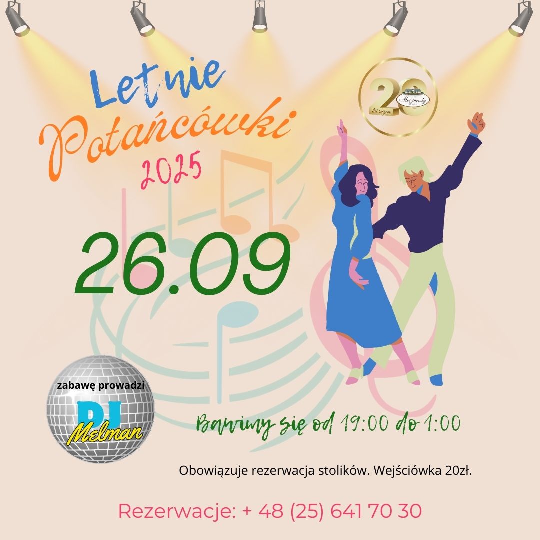 Już w najbliższy piątek, 26 września 2025 roku, zapraszamy Państwa na wyjątkowe wydarzenie – ostatnią letnią potańcówkę w Dworze Mościbrody.
