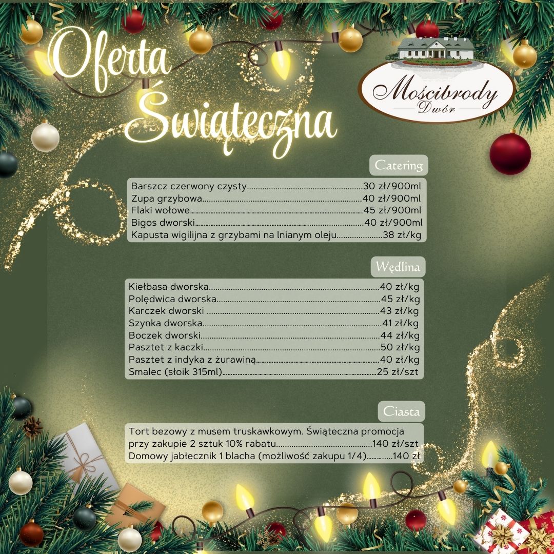 Każde danie powstało na bazie sprawdzonych receptur naszej kuchni, z dbałością o jakość, tradycję i domowe ciepło. Dzięki temu Wasze wigilijne i świąteczne stoły mogą nabrać prawdziwie dworskiego charakteru — aromatycznego, pachnącego i pełnego smaków, które kojarzą się z bliskością i spokojem.